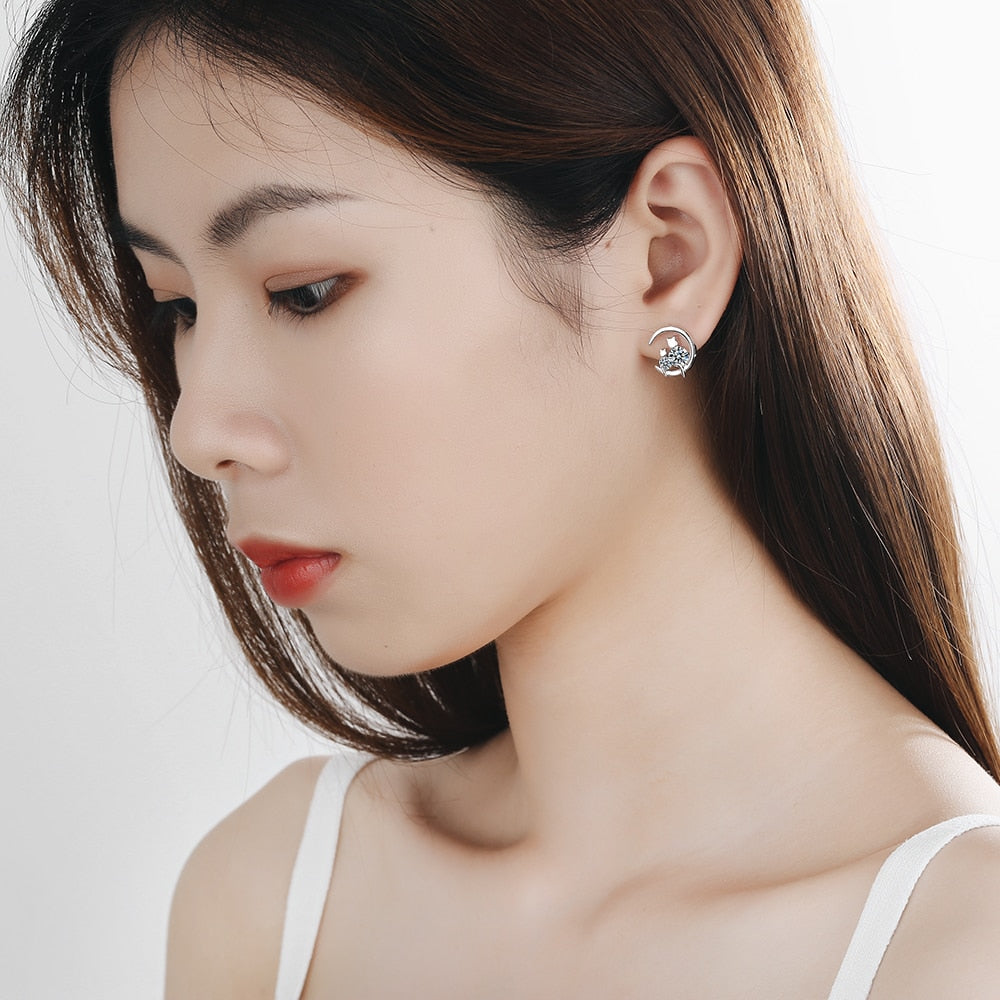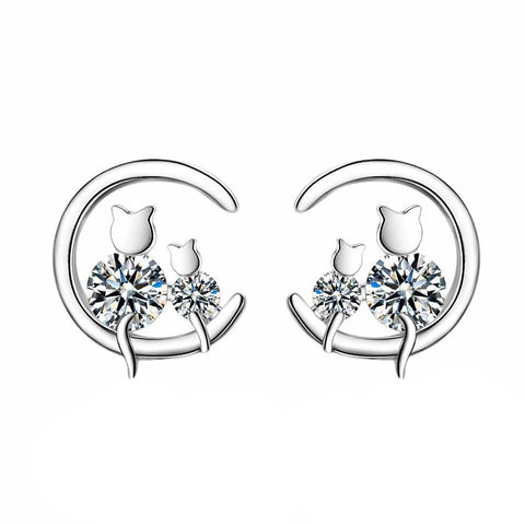 Introducing the Half Moon Cat earrings, the perfect piece for any cat lover's collection. Crafted from high-quality 925 sterling silver, these earrings add a unique and fun touch to any look. The intricate design features two cats sitting on a half-moon, representing the beauty that exists in both the human and animal realms.