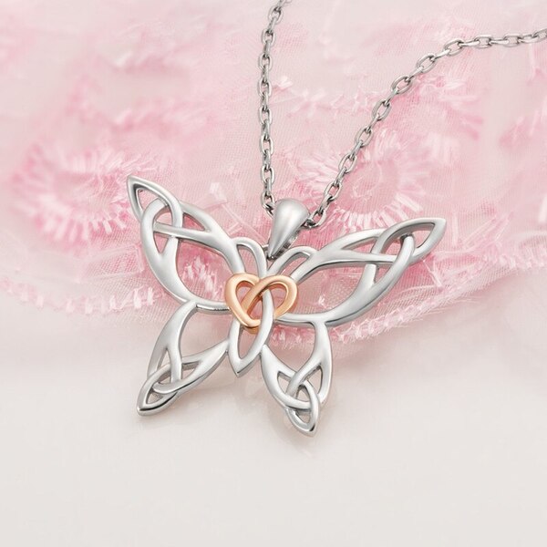 Wear a unique Celtic butterfly necklace around your neck.