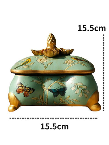Discover the exceptional ceramic jewellery box made from high-quality materials. Its original throne cushion design adds a royal touch to your jewellery collection. Measuring 15.5 x 15.5 cm, this box offers ample space for your treasured accessories. The gold-plated feet and opening handle provide an elegant and luxurious finish. Protect and organise your jewellery in style with this ceramic jewellery box that combines functionality and aesthetics for sophisticated storage.