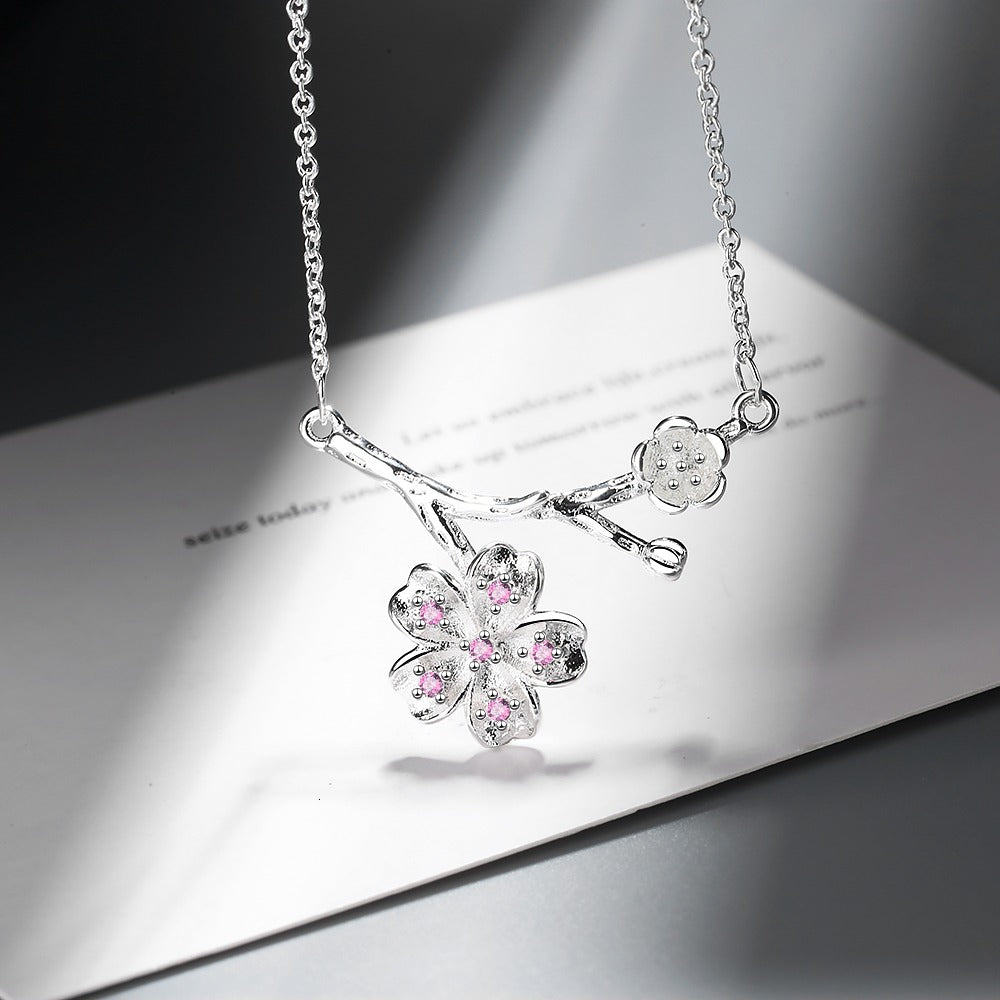 Charming Cherry Blossom Shaped Necklace in Silver.