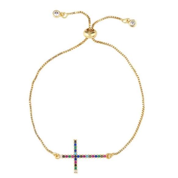 The cross of this charming Christian bracelet is adorned with numerous high-quality cubic zirconias. Cubic zirconia is a stone created in a lab under extremely high temperatures. The term “cubic” in the name refers to the way the zirconia is produced, using a method that generates cubic crystals, with a shape similar to diamonds.