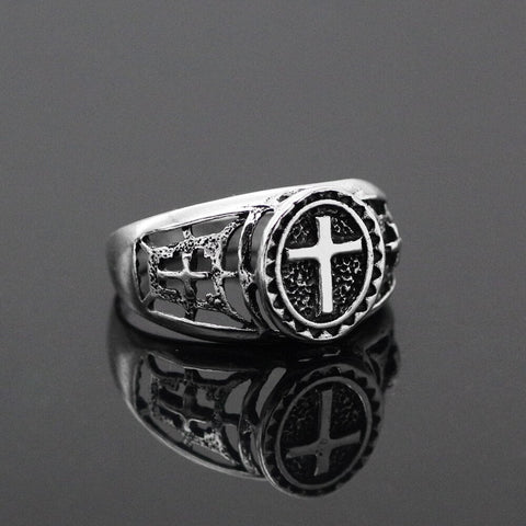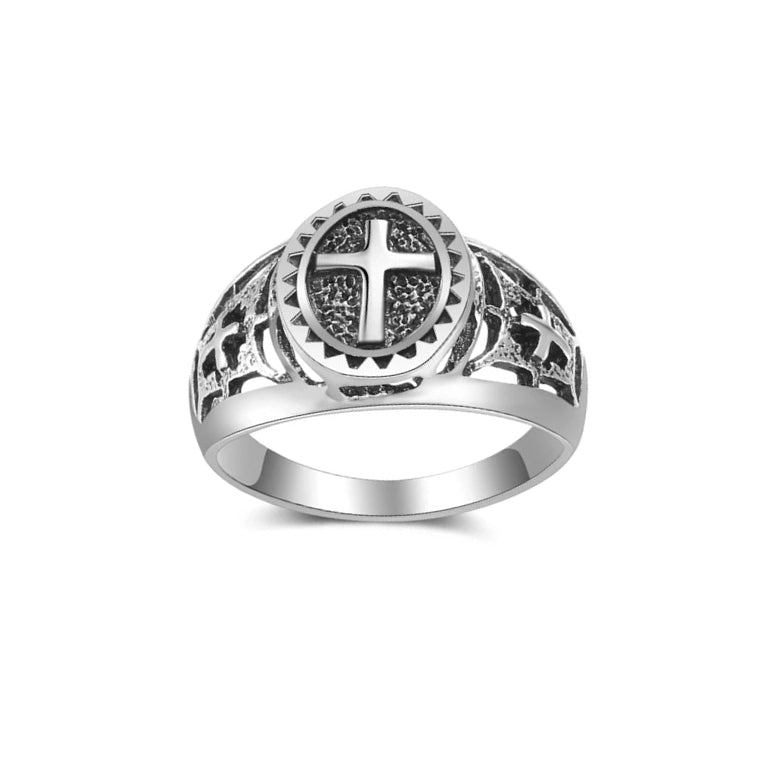 This pure and elegant religious ring adorns your finger, offering you the protection and love of Jesus Christ through the ultimate symbol of the Christian faith: the Christian cross.