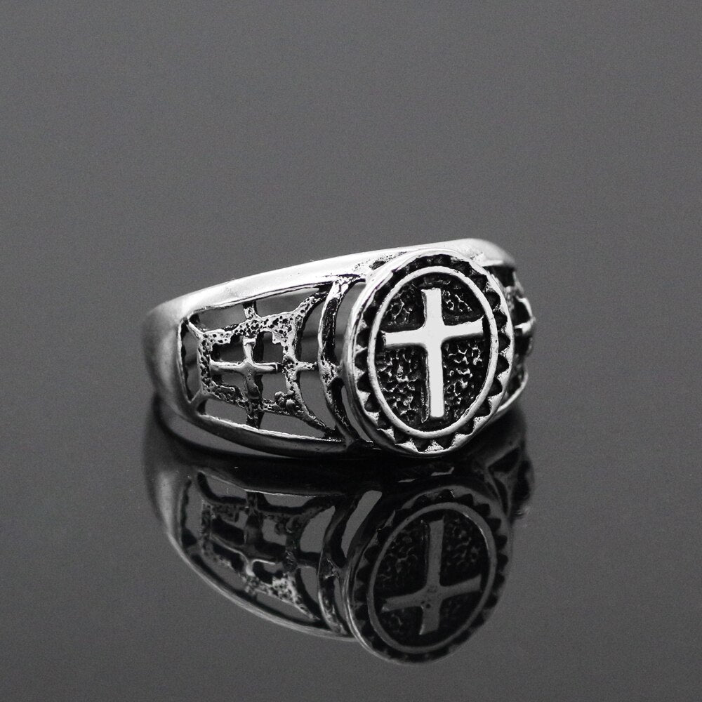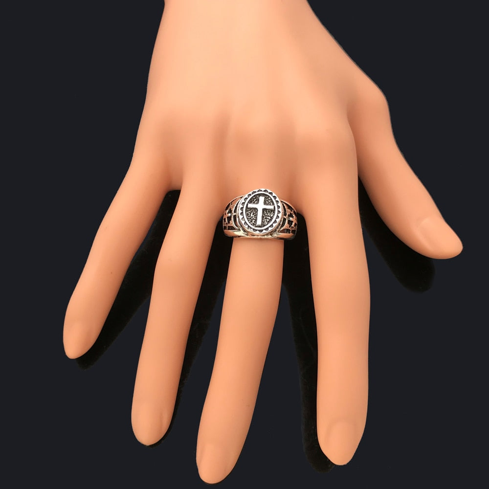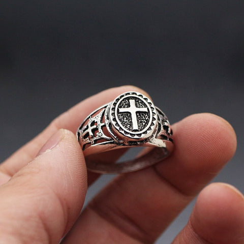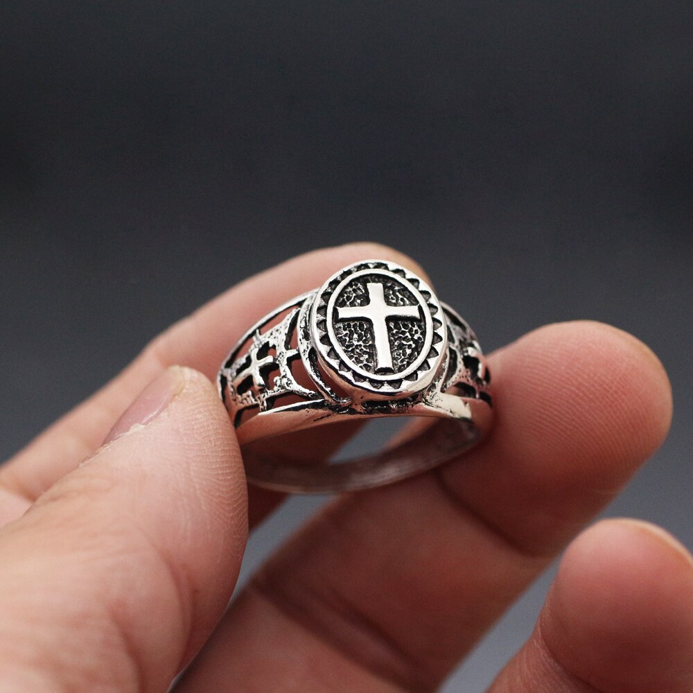 Feel the love and protection of the Lord with your finger with this religious ring, carefully crafted by our artisans from a zinc alloy with a Christian cross. The zinc alloy is a noble and high-quality material, which is why we chose it for the creation of this excellent Christian religious ring.