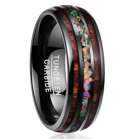This black wooden ring will please you if you value bold designs. Thanks to its original design and style, this ring stands out and makes you unique. It is made of tungsten, a material known for its resistance to corrosion and high hardness.