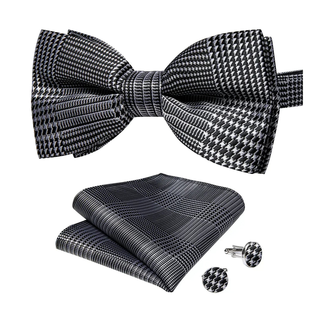 The set includes: bow tie, pocket square, and 2 cufflinks.