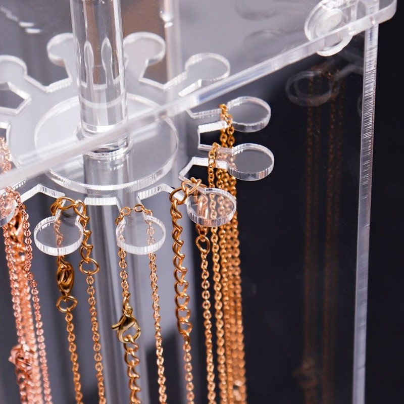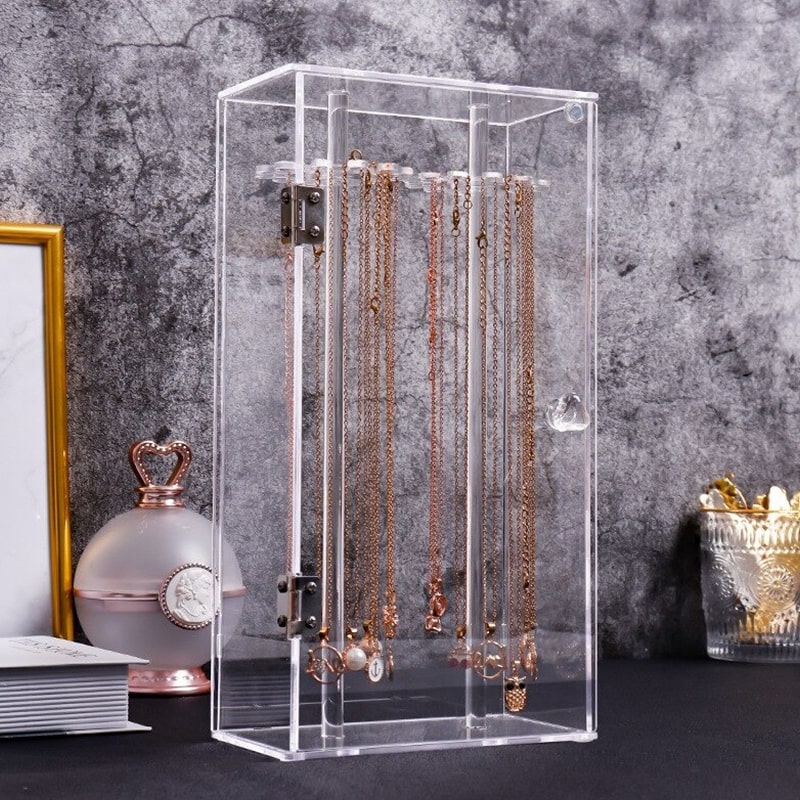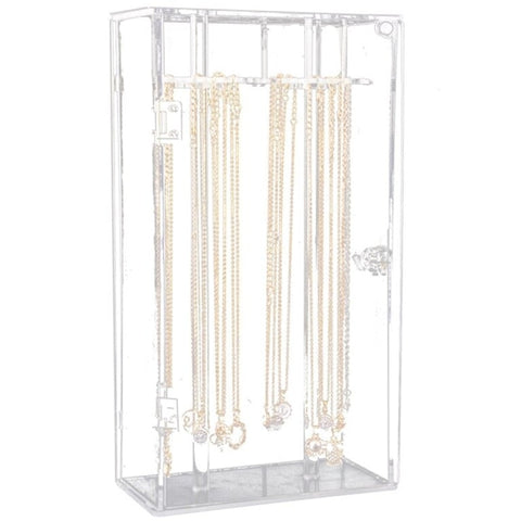 This transparent necklace holder is perfect for displaying long necklaces and at the same time, protecting them from dust! Made from acrylic, this necklace holder can accommodate up to 24 pieces. The metal hinges open easily, offering convenient access to your collection.