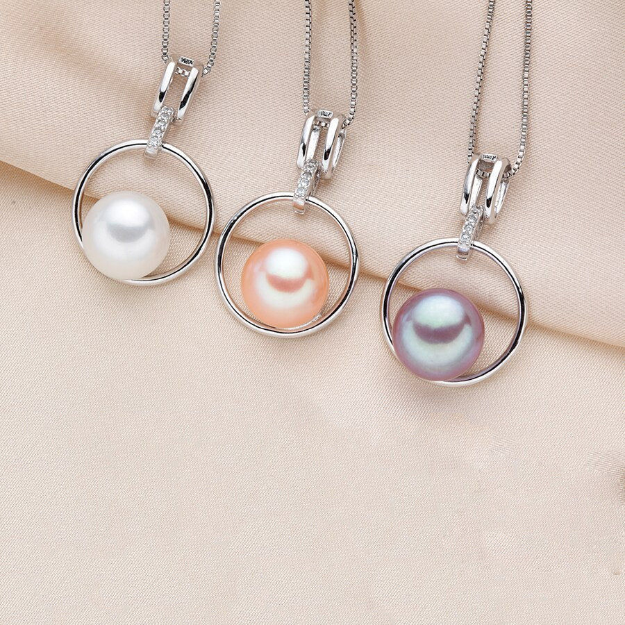 Looking for a necklace? Choose this coloured pearl necklace. Sterling silver 925 pearl necklace, available in white, black, purple, and pink.