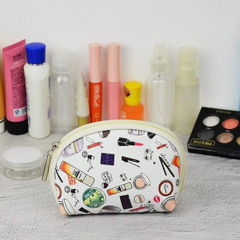 In white with illustrations of various beauty products and accessories, this bag is undoubtedly the perfect organiser. It's extremely compact, with a reduced size and weight of only 100 g, making it very easy to carry and ideal for taking on trips. With a style similar to fashion bags, it's made from split leather with a PU layer with a protective film effect. This bag was made to last.