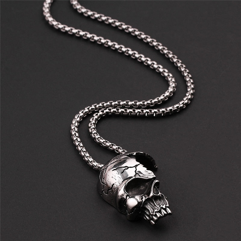Let yourself be seduced by the rebellious spirit of this striking Cracked Skull necklace, made from high-quality steel!