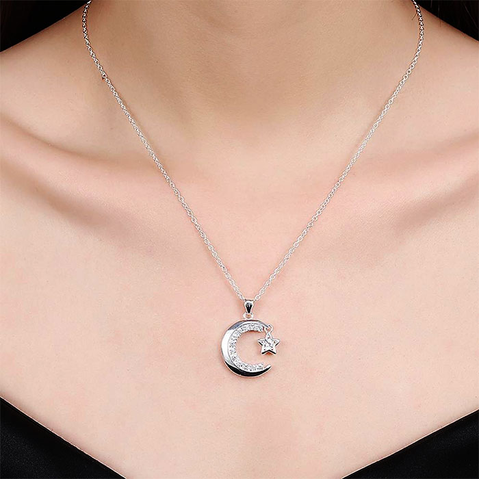 Exceptional Silver Necklace with Crescent Moon Pendant