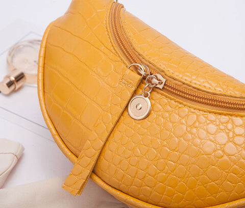 This leather waist bag with a crocodile effect is a feminine and practical accessory that adds a touch of elegance to your style. With a sophisticated and modern design, this women's waist bag with crocodile effect is the perfect choice for those looking for an accessory that is both charming and on-trend. Thanks to the adjustable shoulder strap, you can wear it in various ways, adding versatility to your look.