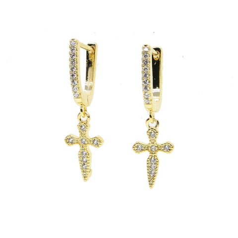 Classic and elegant, this magnificent pair of cross-shaped drop earrings is an excellent addition to any look! Created by an exceptional and talented designer, this charming piece of jewellery features a beautifully gold-plated exterior and is adorned with high-quality cubic zirconia.
