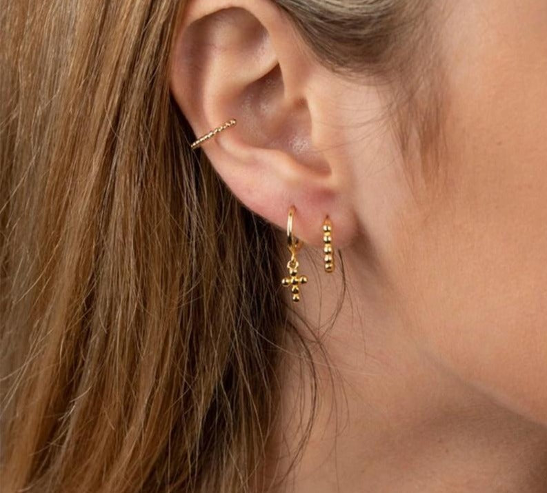 These cross-shaped earrings add a striking and elegant touch to your ears.