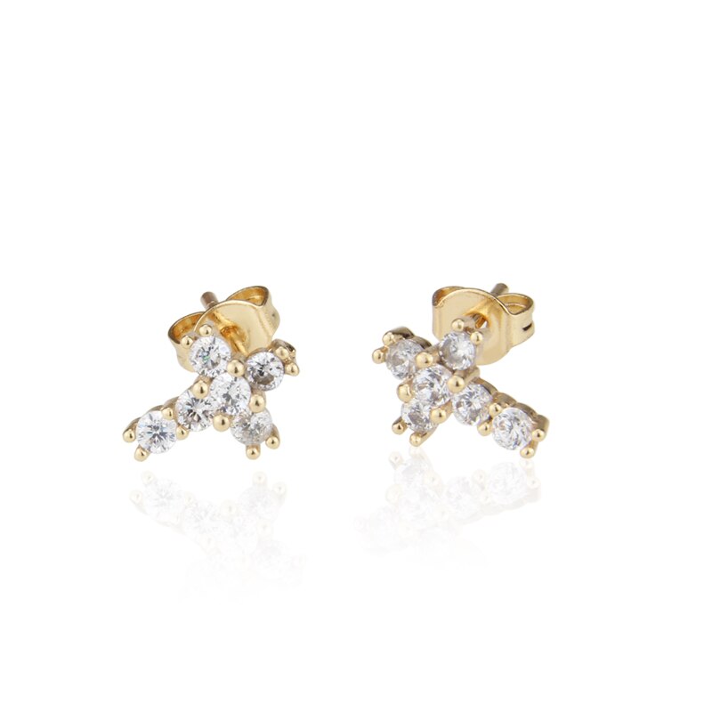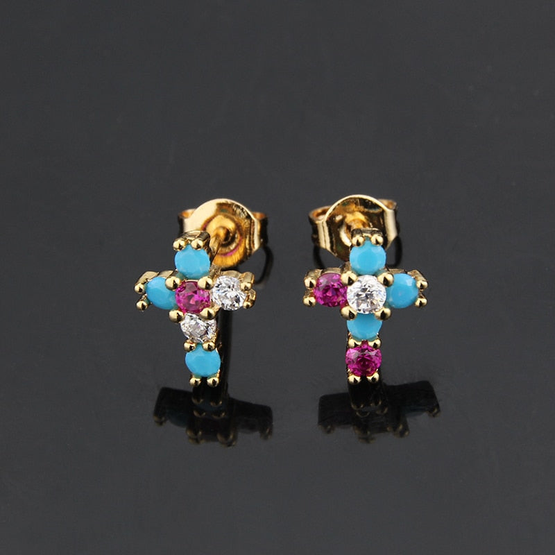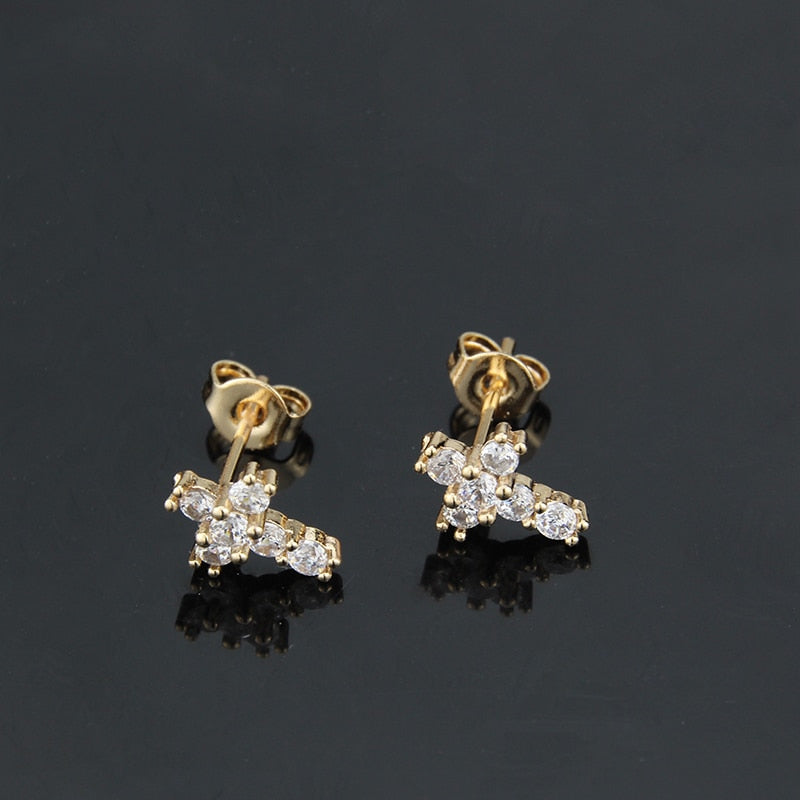 - Women's cross-shaped earrings with high-quality zirconias, made from stainless steel.
