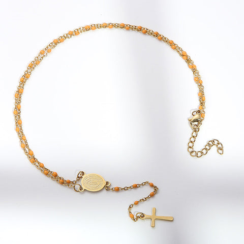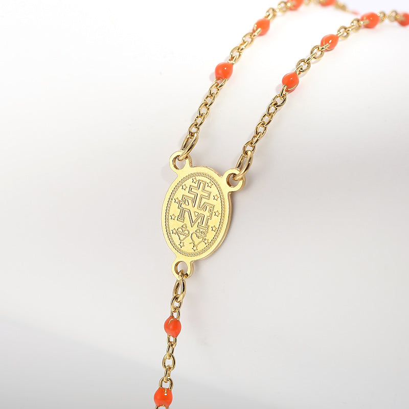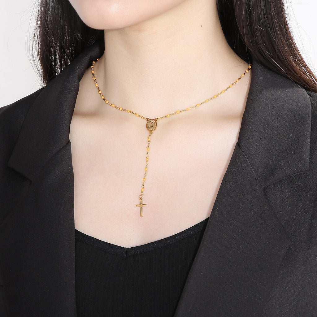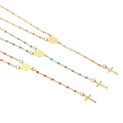 We drew inspiration from the rosary to create this stunning colourful beaded cross necklace. It adorns your neck and illuminates you with the light of Christ.