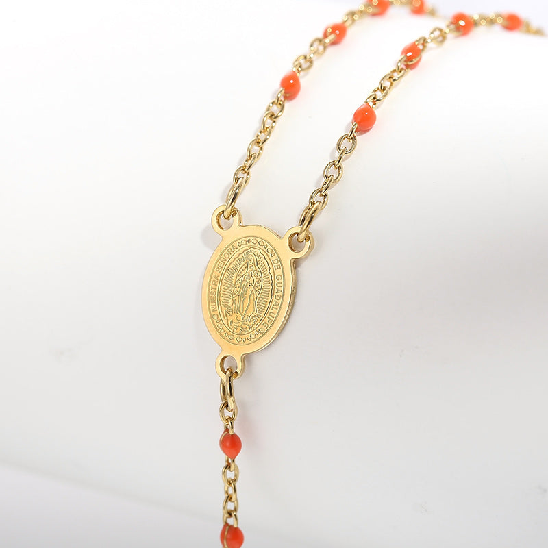 With this rosary-shaped necklace around your neck, there's no doubt about your faith. You take pride in your belief and can wear it anywhere, as it's made from high-quality stainless steel. It's 46 cm long and comes with a chain and a clasp, allowing you to adjust it as you prefer. Some women like to wear it low, while others prefer it snug around the neck. Wear it your way!