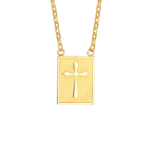 Dreaming of a scapular shaped piece of jewelry? Then this cross necklace is for you! It looks stunning around the neck and accompanies you every day.