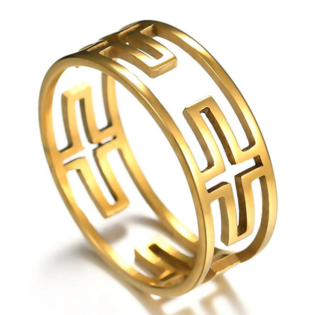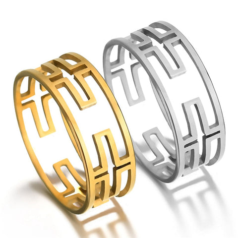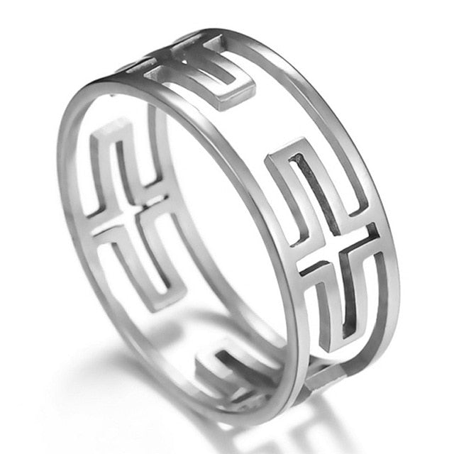 Wear this magnificent religious ring on your finger, meticulously crafted by our artisans and representing the Christian cross. Made from high-quality stainless steel. The durability of this material and its renowned qualities as a piece of jewellery are the reasons we chose to use it to create this high-quality Christian religious ring.