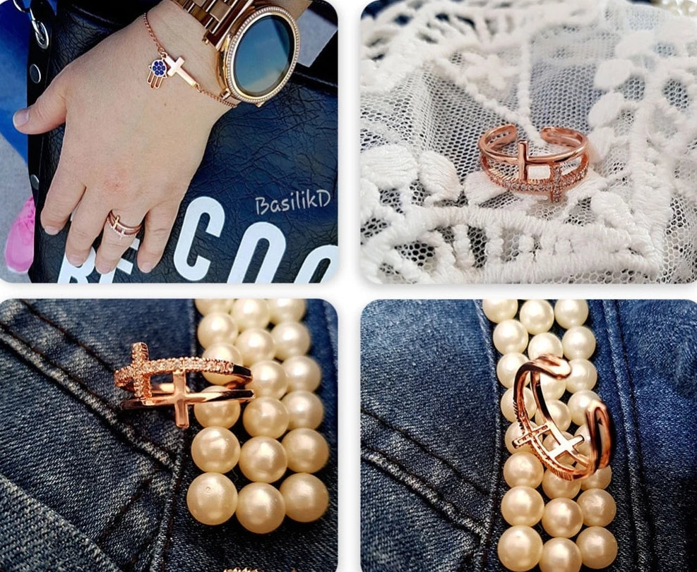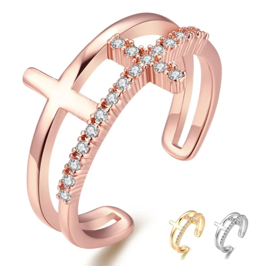 This elegant, exquisite, and extremely feminine ring beautifies your finger and, at the same time, conveys the protection and love of Jesus Christ through the supreme symbol of Christianity: the Christian cross.