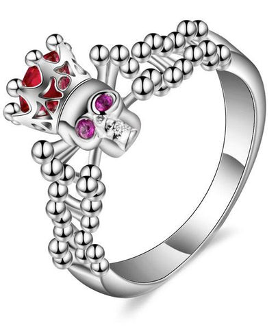 Her Majesty is never without her crown, made from the largest ruby in the kingdom. This is understandable, considering the beauty and splendour of this crown skull ring.