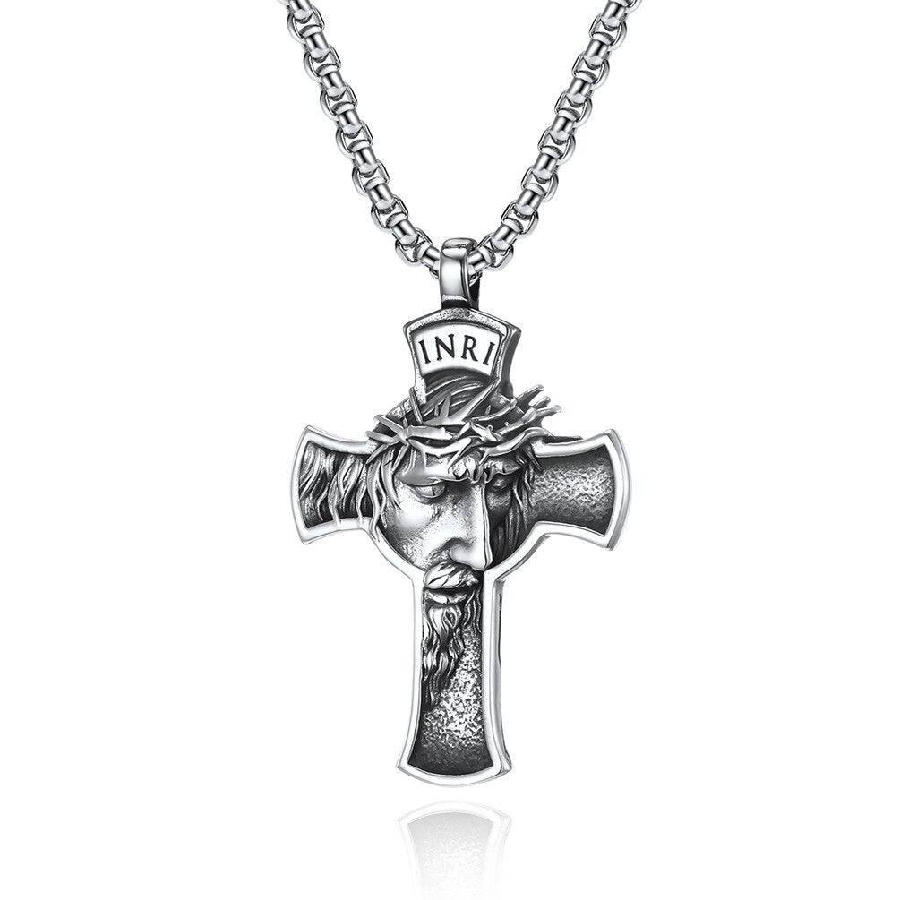 Made from high-quality stainless steel, this durable necklace won't fade over time and is perfect for everyday wear. The cross-shaped pendant is decorated with the face of Christ, constantly reminding you of His presence and love.
