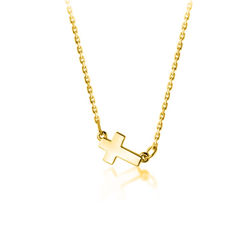This sublime necklace with the cross in a horizontal position is an essential piece in a Christian woman's jewellery box. It's versatile, as it can also be worn as a choker.