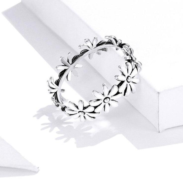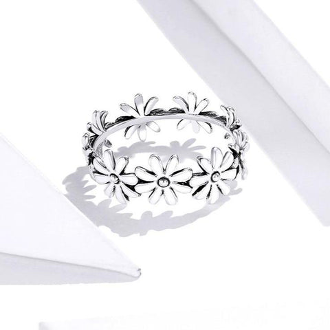 This ring features a high-quality solid silver structure, adorned with small daisies that give it an original and natural style. A jewel finished with attention to detail, that will charm the finger.
