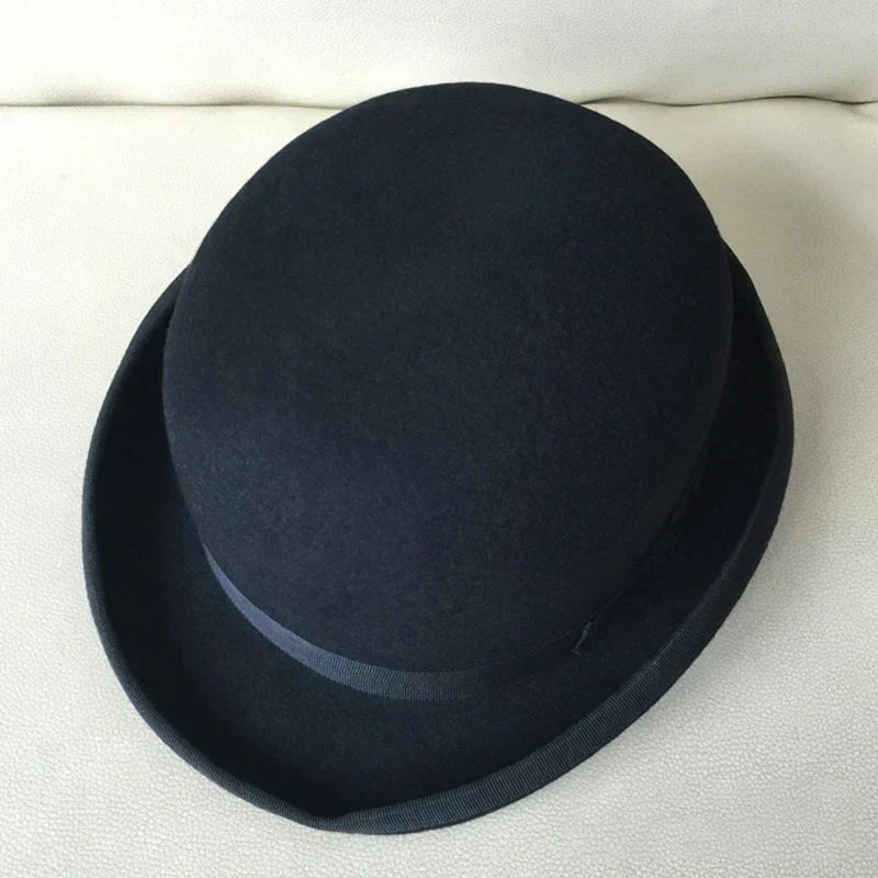 This dark blue bowler hat, designed for both men and women, perfectly embodies elegance and sophistication. With its timeless style and high-quality materials, this luxurious hat is an essential choice for those wishing to add a touch of refinement to their wardrobe.