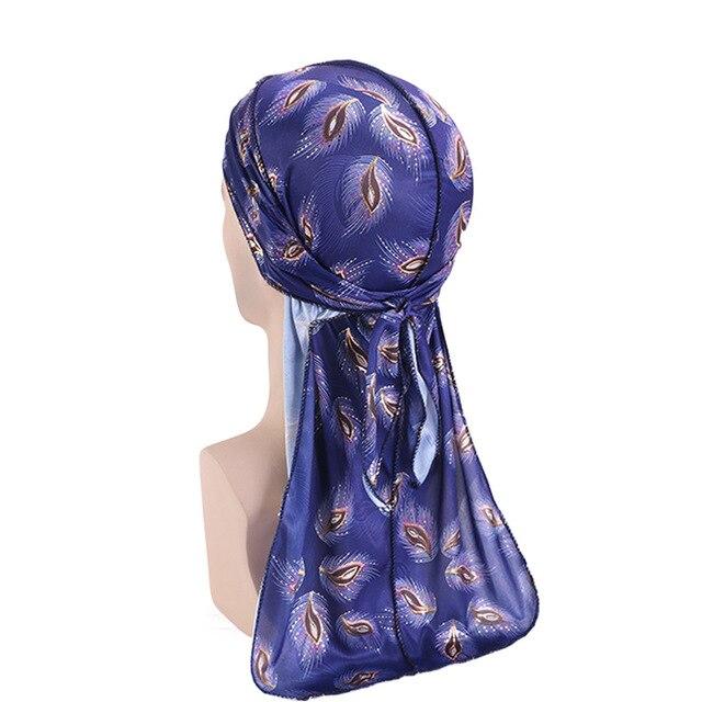 Dark blue durag with a floral pattern. A vintage look that will make you stand out in the crowd. An accessory that can be worn during the day or at night to keep hair in place.