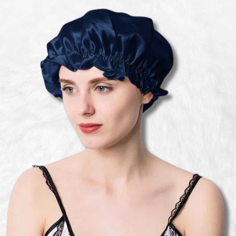 Made from high-quality silk, the dark blue silk sleep cap retains your hair's natural moisture and protects it from damage overnight. In no time, you'll notice softer, smoother, and shinier hair. This sleep cap is not only functional but also stylish. Its deep midnight blue tone adds a touch of sophistication to your nighttime style.