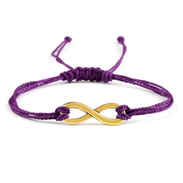 This dark purple bracelet with an infinity symbol is elegant and sophisticated, making it a perfect gift idea. The main highlight of the bracelet is that it is made of braided cotton cord. It is also adjustable, making it easy to wear.