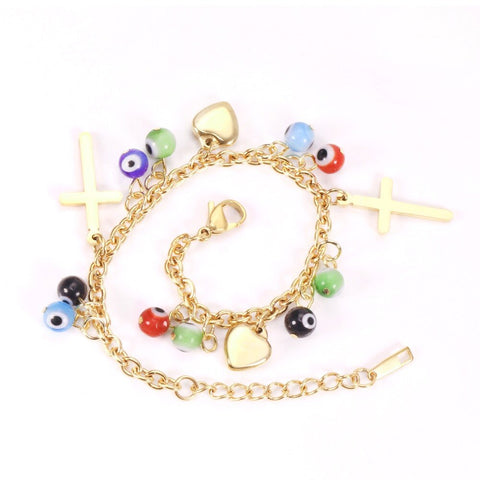 Christian Bracelet with Christian Crosses and Beautiful Coloured Beads.
