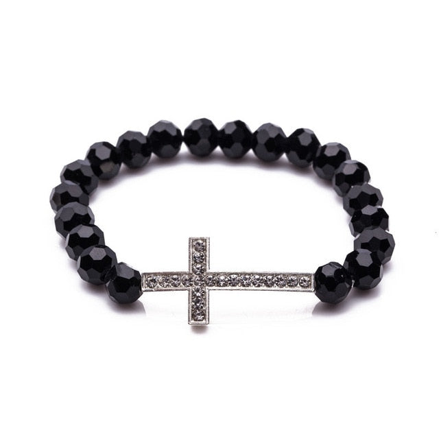 Let yourself be captivated by this high-quality cross bracelet, with an elastic cord (perfectly adjusts to all wrists). The Christian cross is adorned with crystal rhinestones and colourful fantasy beads. Wear on your wrist all the love and protection of Christ with style.