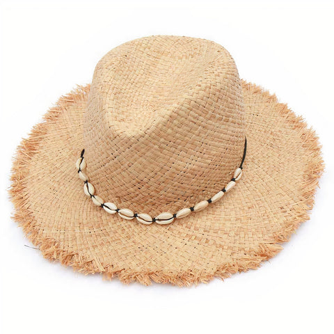 This designer straw hat is ideal for enjoying the sea breeze. It's made from natural straw and decorated with stunning shells, making it a beautiful and unique handmade piece.