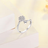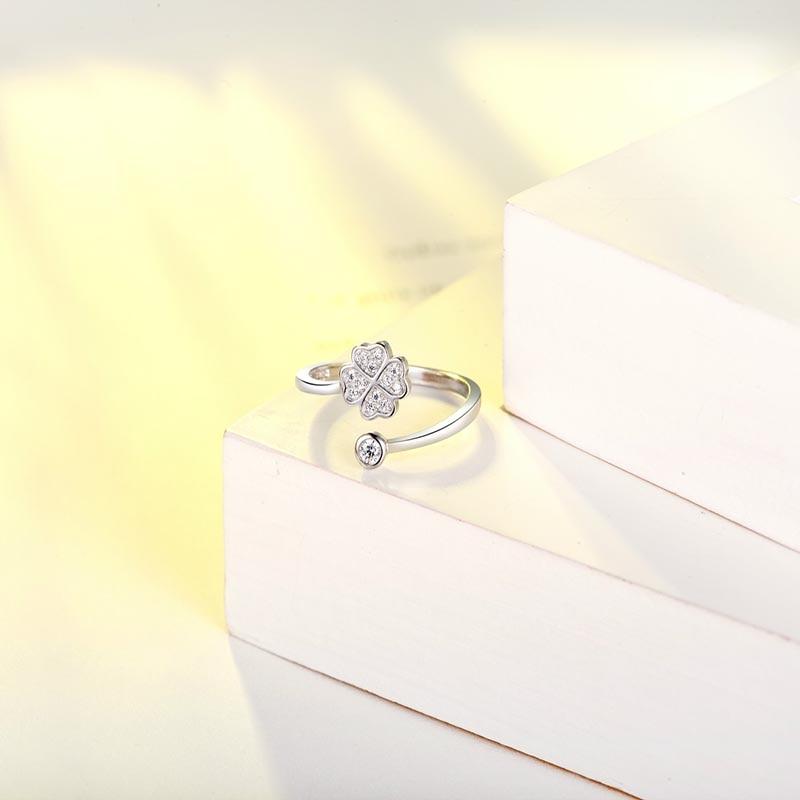 The adjustable and carefully polished setting features a small flower adorned with magnificent shimmering crystals. A delicate piece of jewellery that exudes pure elegance.