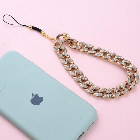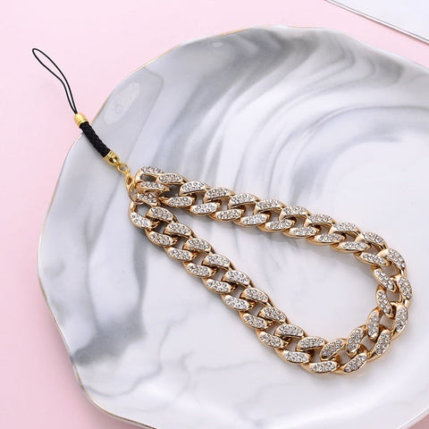 This elegant diamond mobile phone jewel adds a sophisticated touch to your look. The accessory is made from gold material and decorated with beautiful diamond details on the back, giving it an exquisite appearance. It's a luxurious mobile phone jewel with all the characteristics of fine jewellery, including polished surfaces that give it a shiny and sophisticated finish.