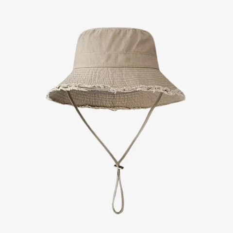 This worn-style bucket hat has been designed for those looking to combine functionality with style, being the perfect accessory for sun-soaked adventures. It provides effective UV protection and adds a touch of elegance to your look. Made from soft cotton, it's lightweight and highly breathable on hot summer days.