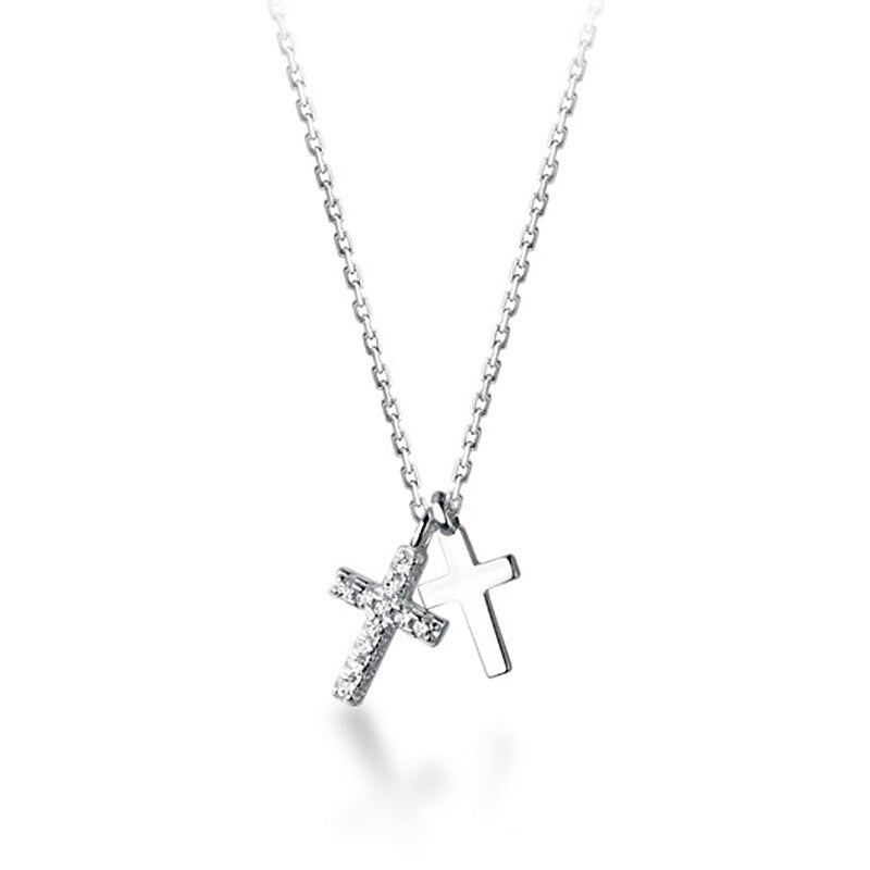 This necklace is made from high-quality silver and is designed to last. The cross-shaped pendant with a smooth finish has a brilliant and sophisticated polish. The other cross-shaped pendant is covered with cubic zirconia stones, which provide a shimmering sparkle. Together, these two pendants create a stunning piece of jewellery that adds a touch of style and spirituality to your look.