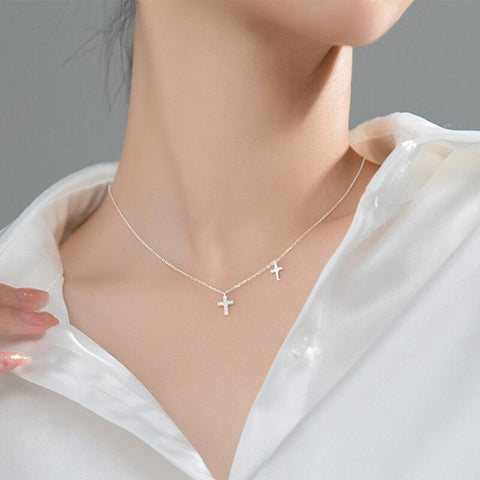 Give yourself a spiritual and elegant gift with this Double Cross pendant necklace