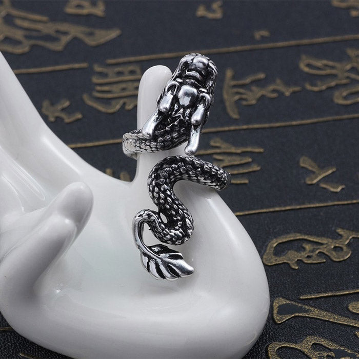The Anna Dragon captivates you with its presence. Its natural charisma transports you to unexpected lands and insurmountable horizons. Dragon-shaped ring.