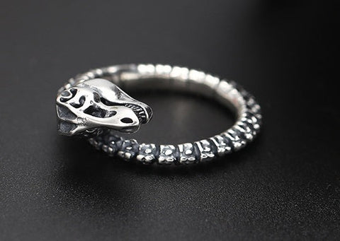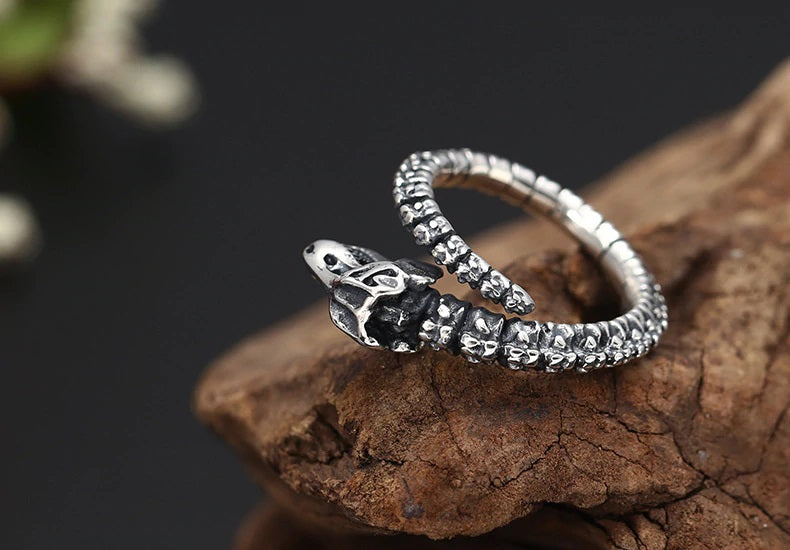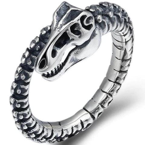 The dragon maintains its energy even after death. The "rigid dragon skeleton, composed solely of habit, preserves the human structure". Solid silver dragon skeleton-shaped ring.