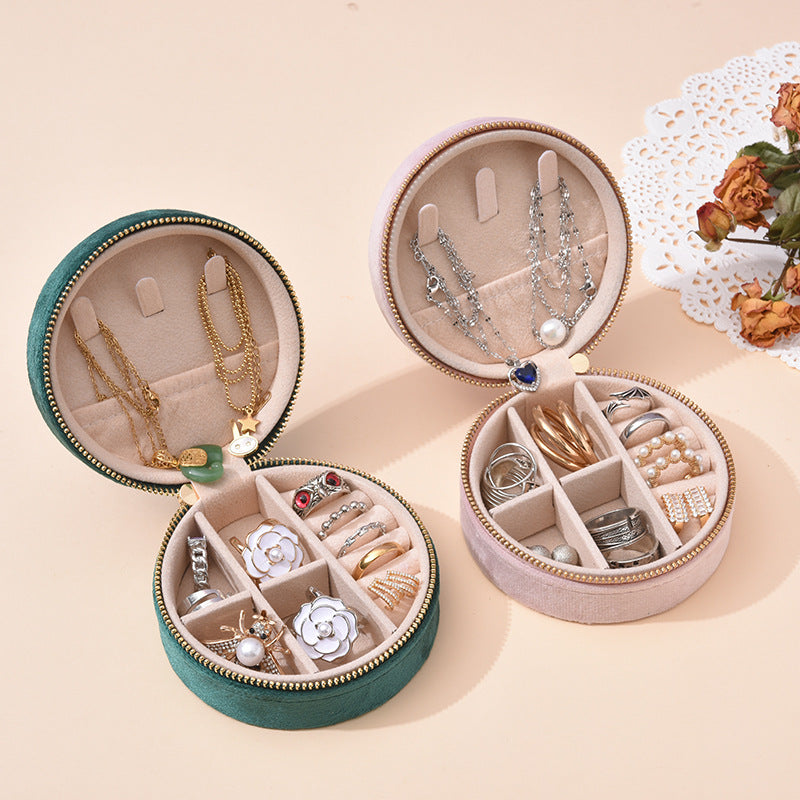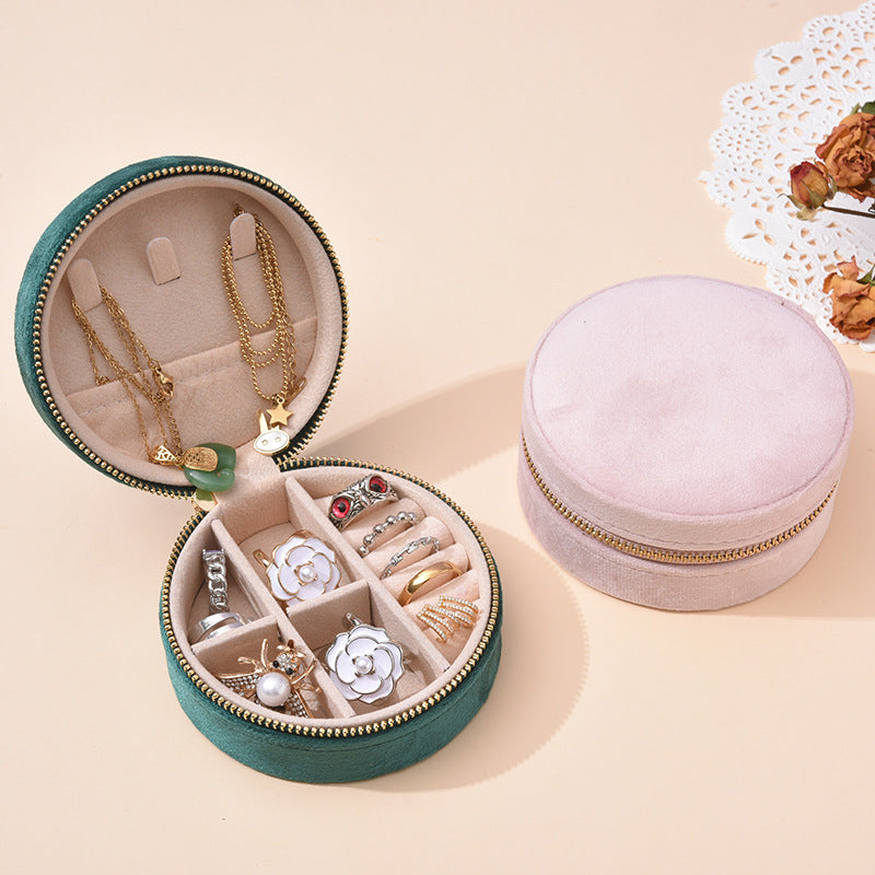 This small round jewellery case in shimmering colours is the perfect companion for all your adventures. This jewellery box for stud earrings keeps your treasures safe in a soft, cosy interior. Thanks to its compact size, the jewellery box fits easily into any bag. Choose from 6 colours. Your jewellery has never been better stored than in this exceptional little gem.