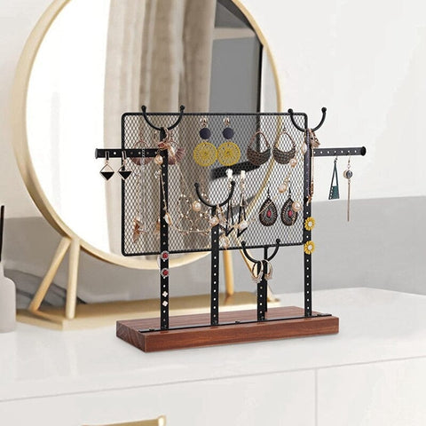 Do you have a large collection of earrings? This modern earring organizer will delight you with its more than 100 compartments! With this, you won't lose your earrings around the house anymore. The wooden base ensures stability and allows you to store a large number of earrings or hanging earrings!