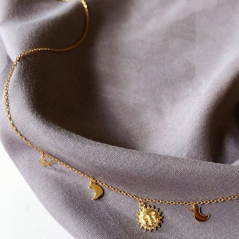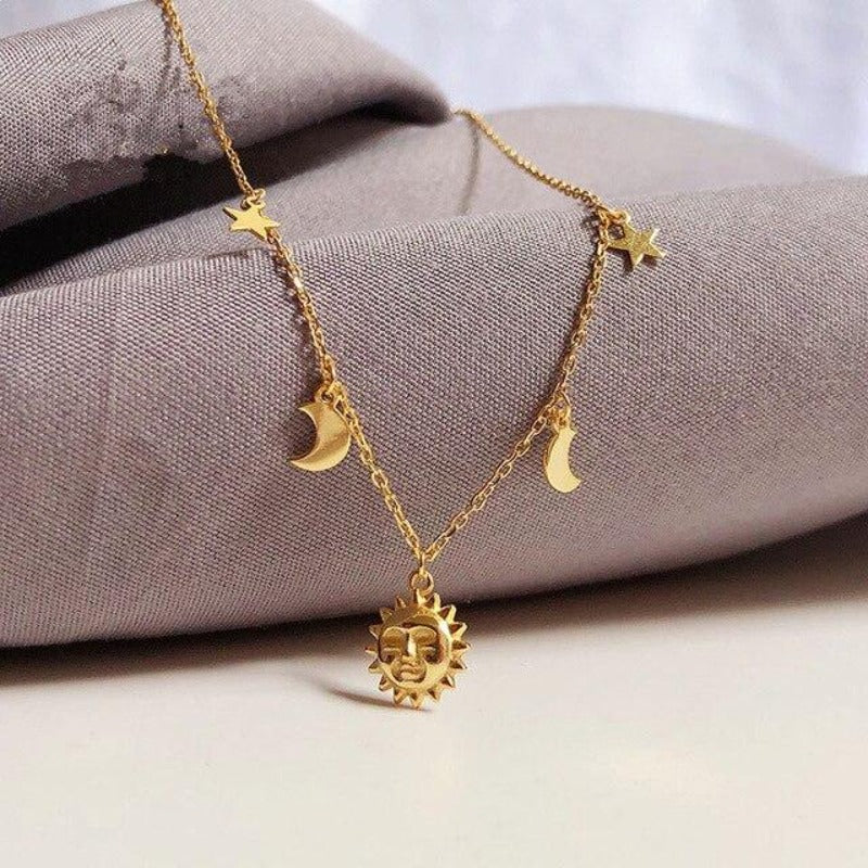 The sun and the moon complement each other and create all the beauty of the world. In this elegant sun and moon necklace, they complete each other and give it shine.