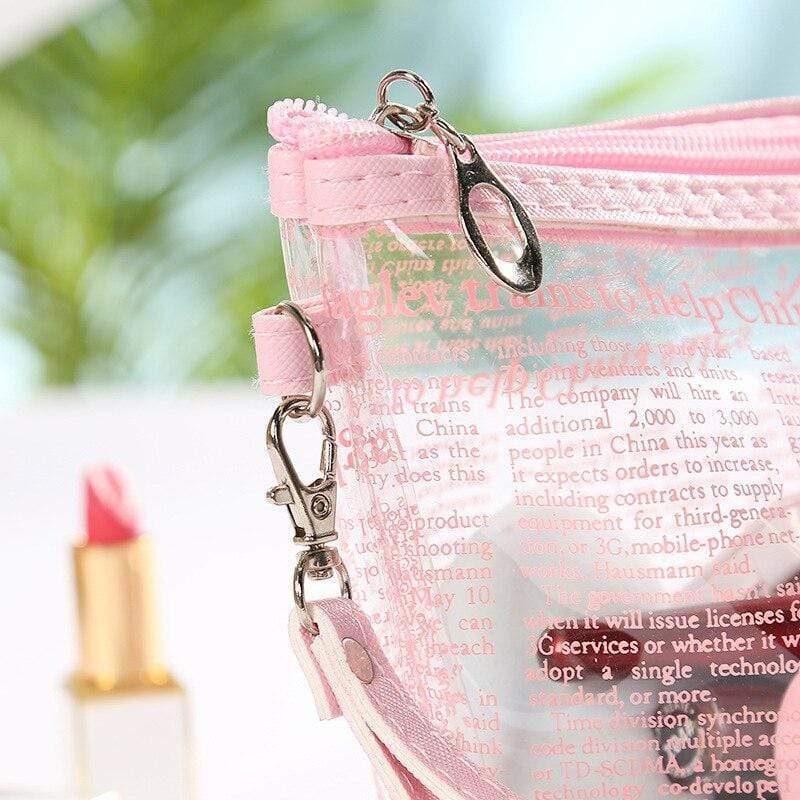 The transparent makeup bag is a small travel bag specifically designed for your cosmetic products. This ladies' bag has a zip closure, is transparent, and its design is noticeable. Whether it's blue, pink, black, yellow, or white, this bag is available in various colours.