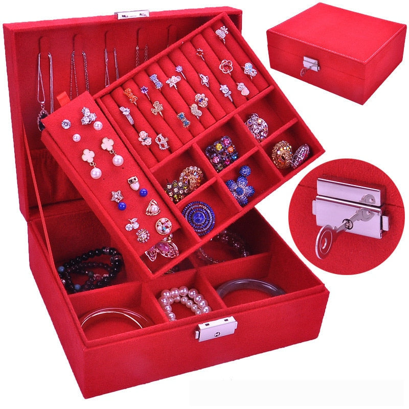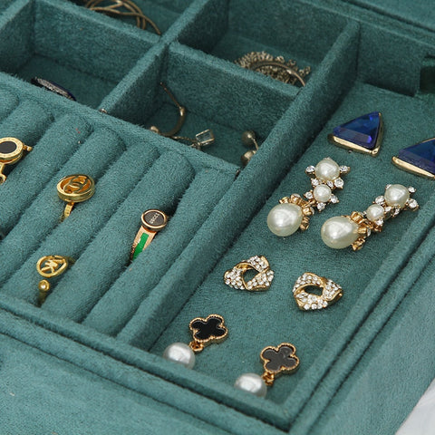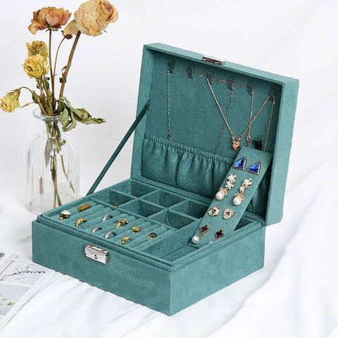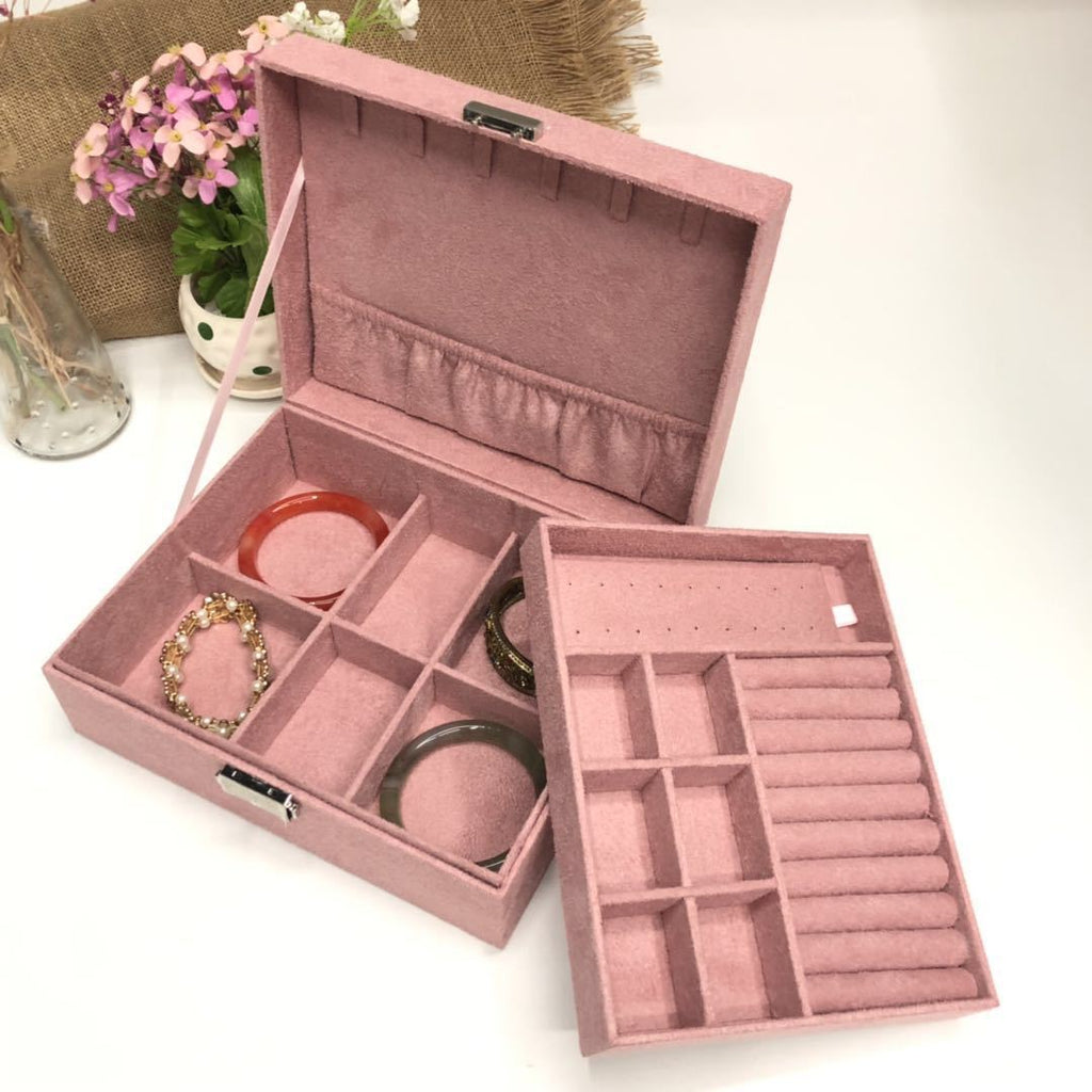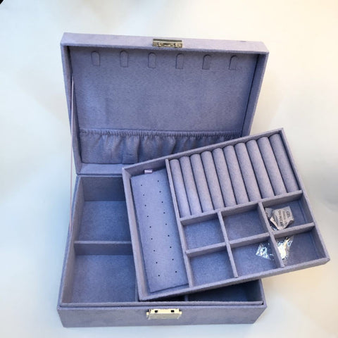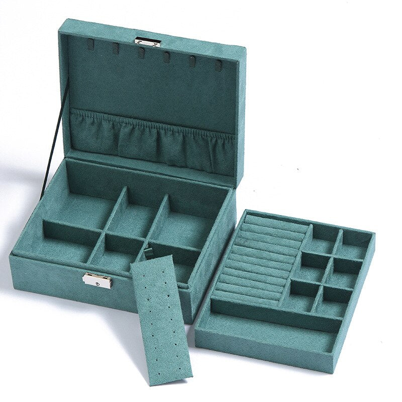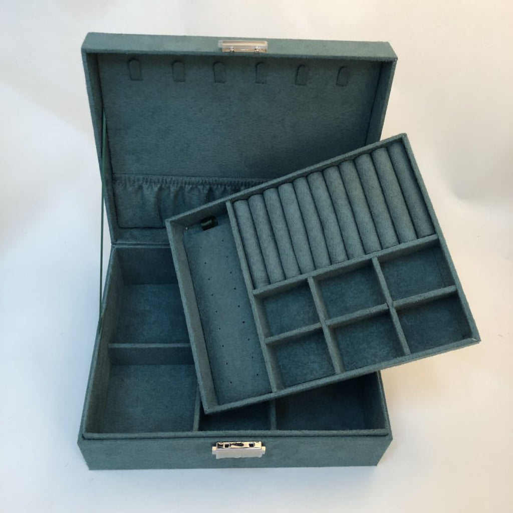 Discover the Elegant Velvet Accessory Case – a premium velvet case with two tiers and hooks for necklaces. It offers secure storage for your jewellery.