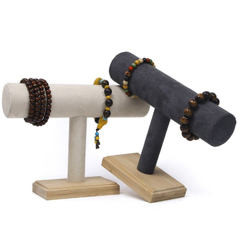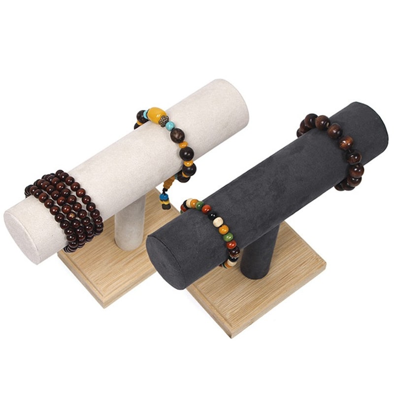 This watch holder made of wood and velvet is perfect for storing watches and bracelets. It is manufactured with eco-friendly materials, such as bamboo. It is an ideal storage place for several bracelets.