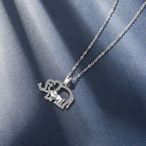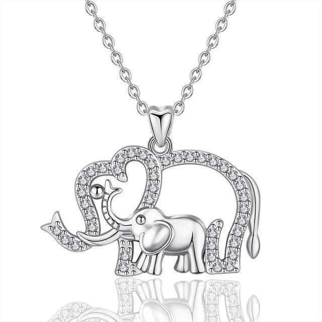 Use this adorable African elephant pendant, adorned with sparkling white crystals, accompanied by its baby elephant to enhance elegance. High-quality silver jewellery