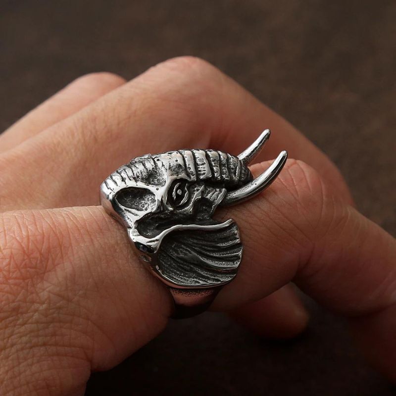 This elephant head signet ring is an artistic representation of one of nature's most respected creatures. The unique and detailed design of the elephant's head makes this ring a true piece of personal expression jewelry.