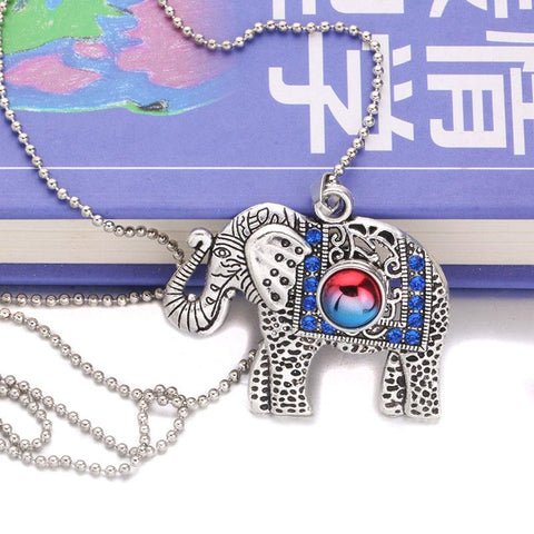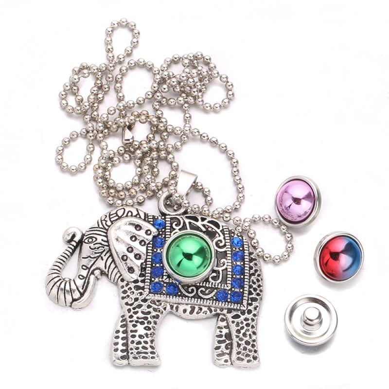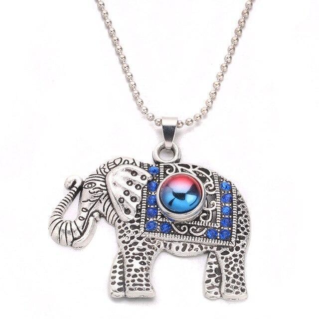 Here is a magnificent elephant necklace with an interchangeable stone. The special feature of this jewellery is the central button that allows for quick replacement of the precious pearl.